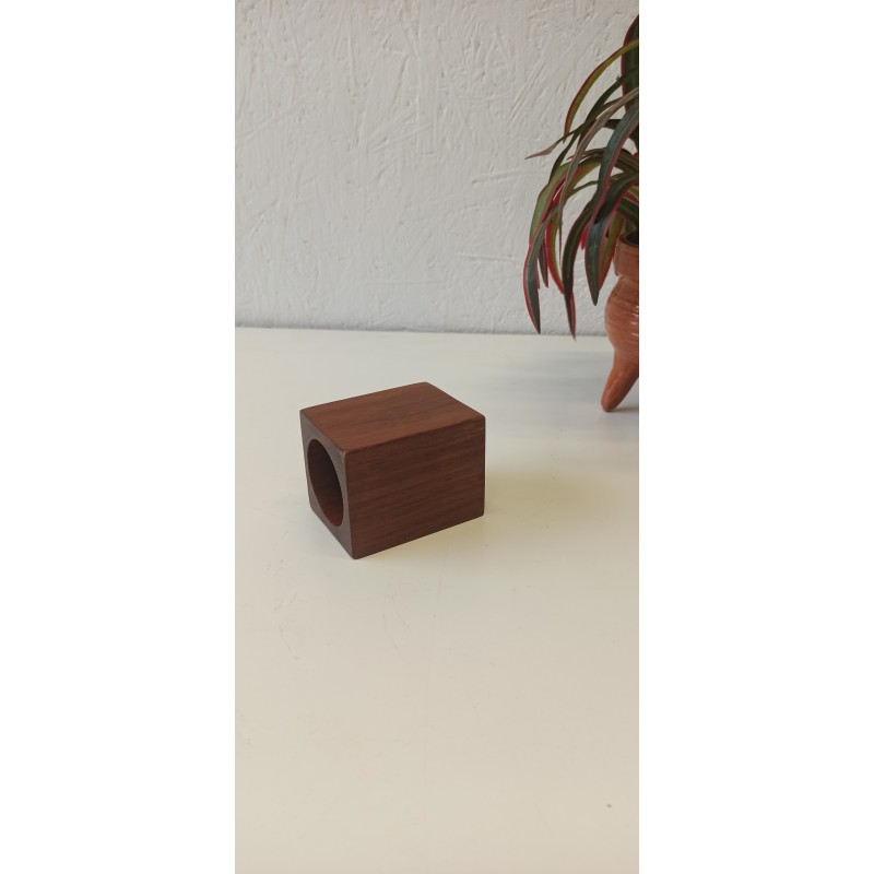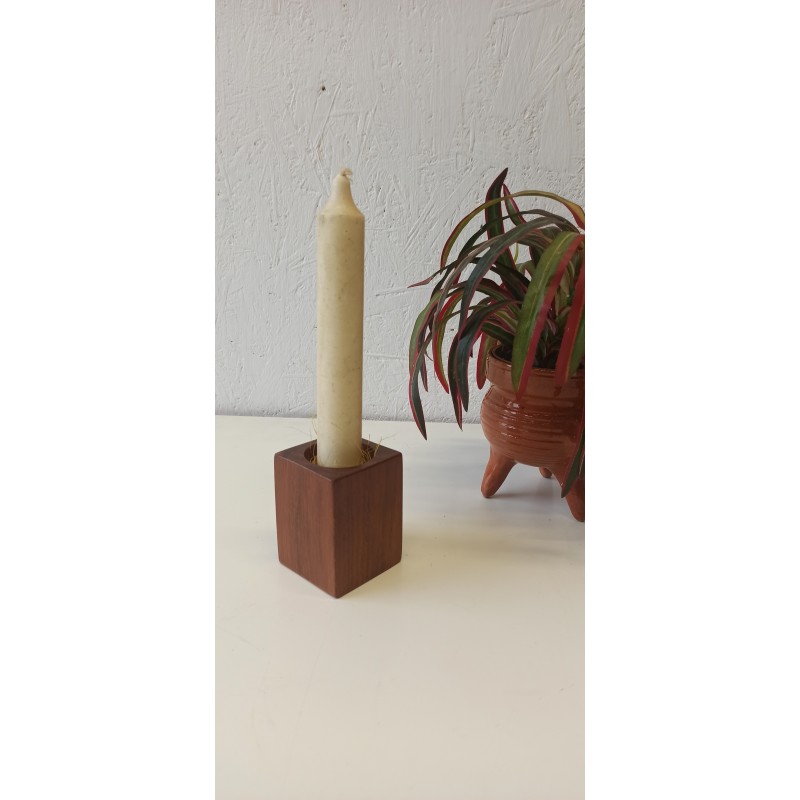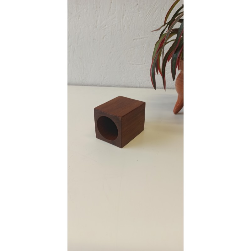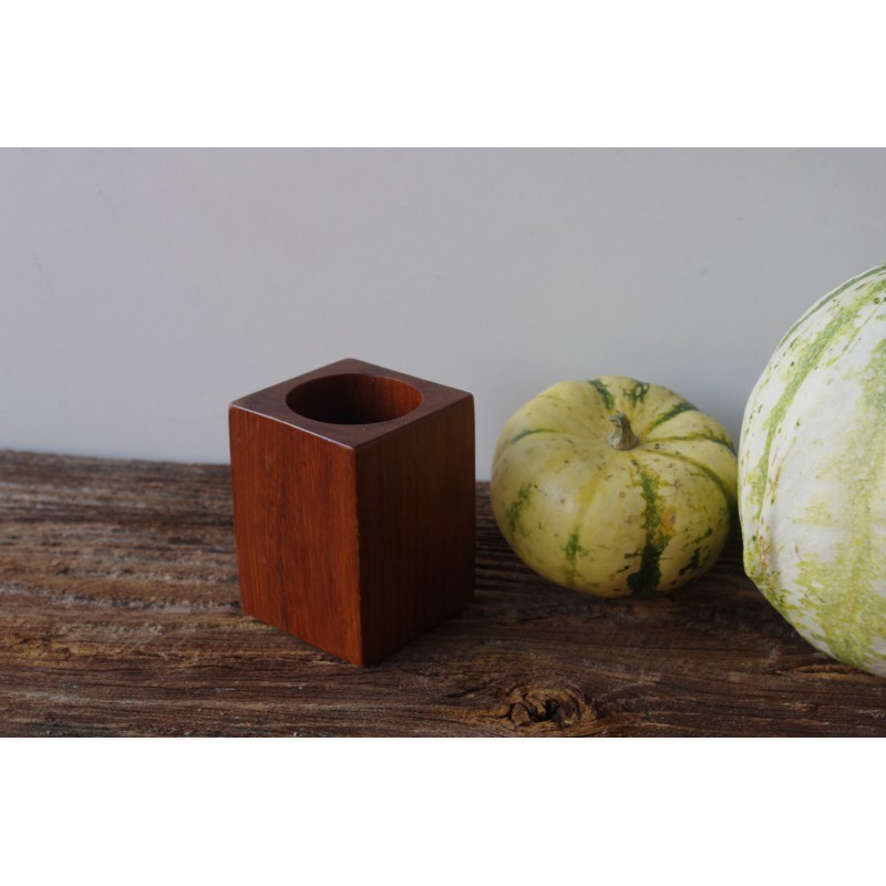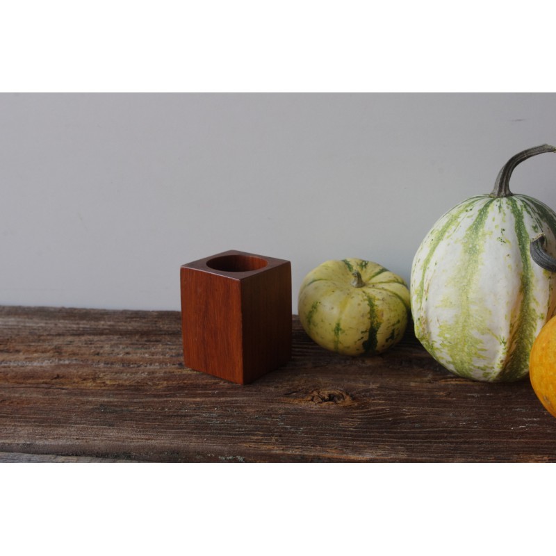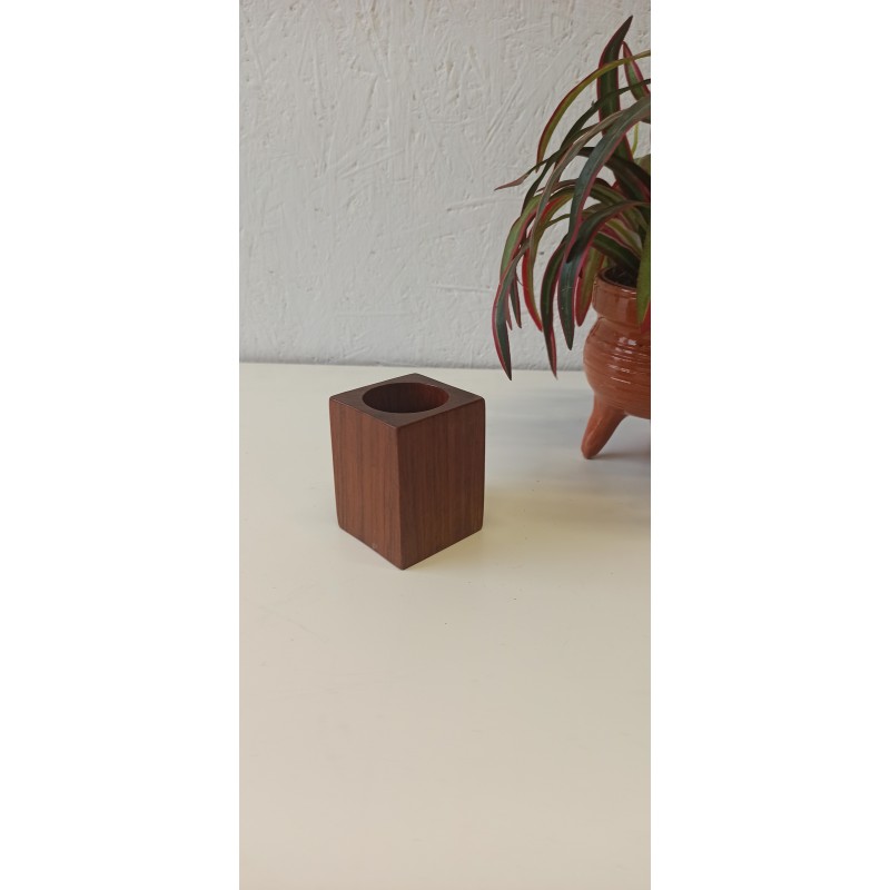 Świecznik z drewna tekowego, a może pojemnik na długopisy. Wszystko zależy od użytkownika. Ciekawy kształt i wygląd.